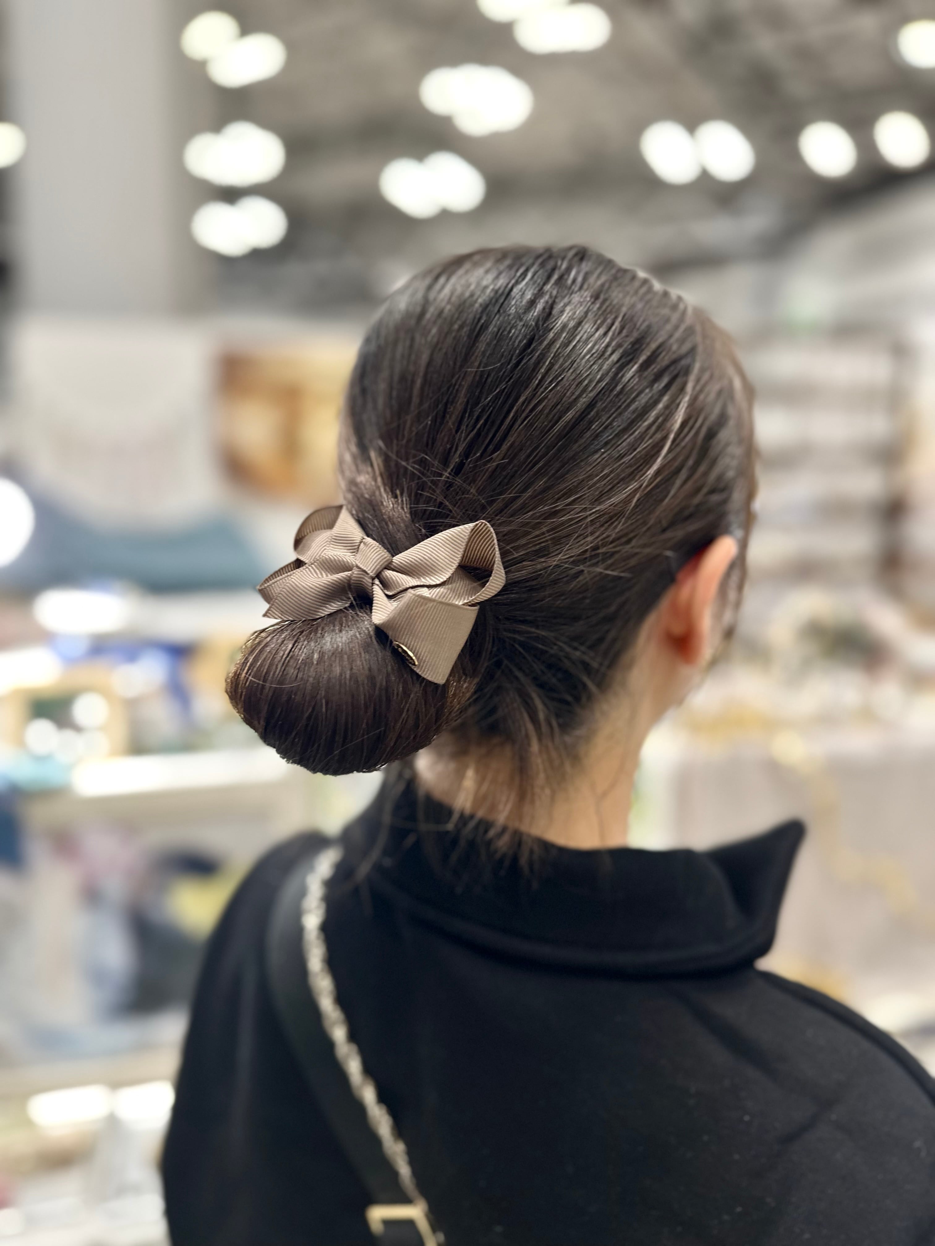 しっかりとハリのあるリボンなので、ご使用の際はループの中に指を入れていただき膨らませてあげると、より立体感をお楽しみにいただけます。