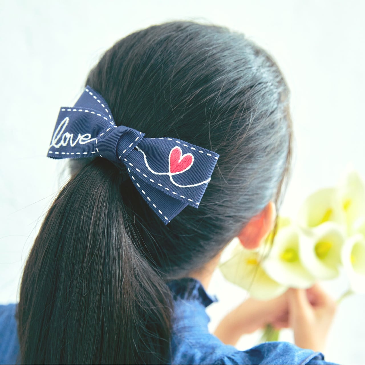 パリのメゾンもこぞって使用する日本の最高品質なMOKUBAのリボンに真っ白なステッチを。