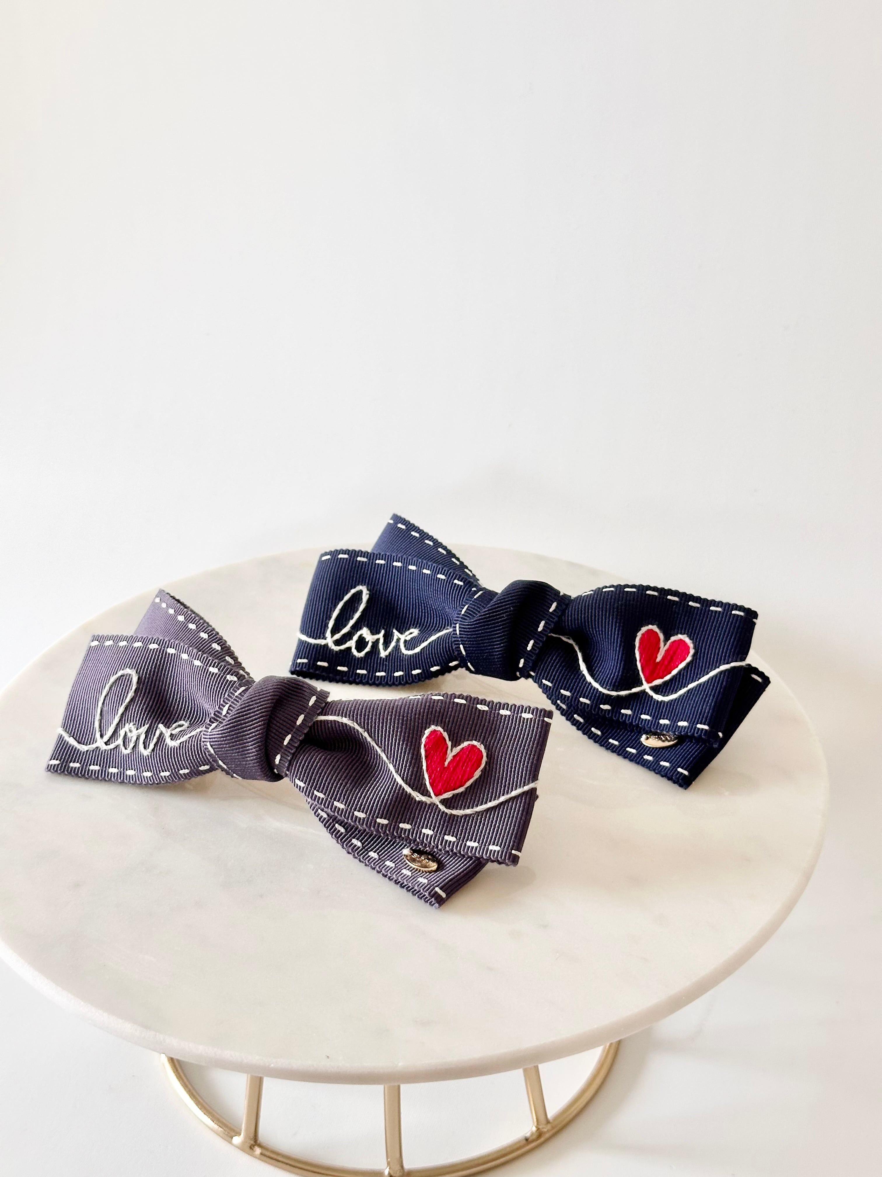 アウトラインステッチでloveの文字を刺繍しました。