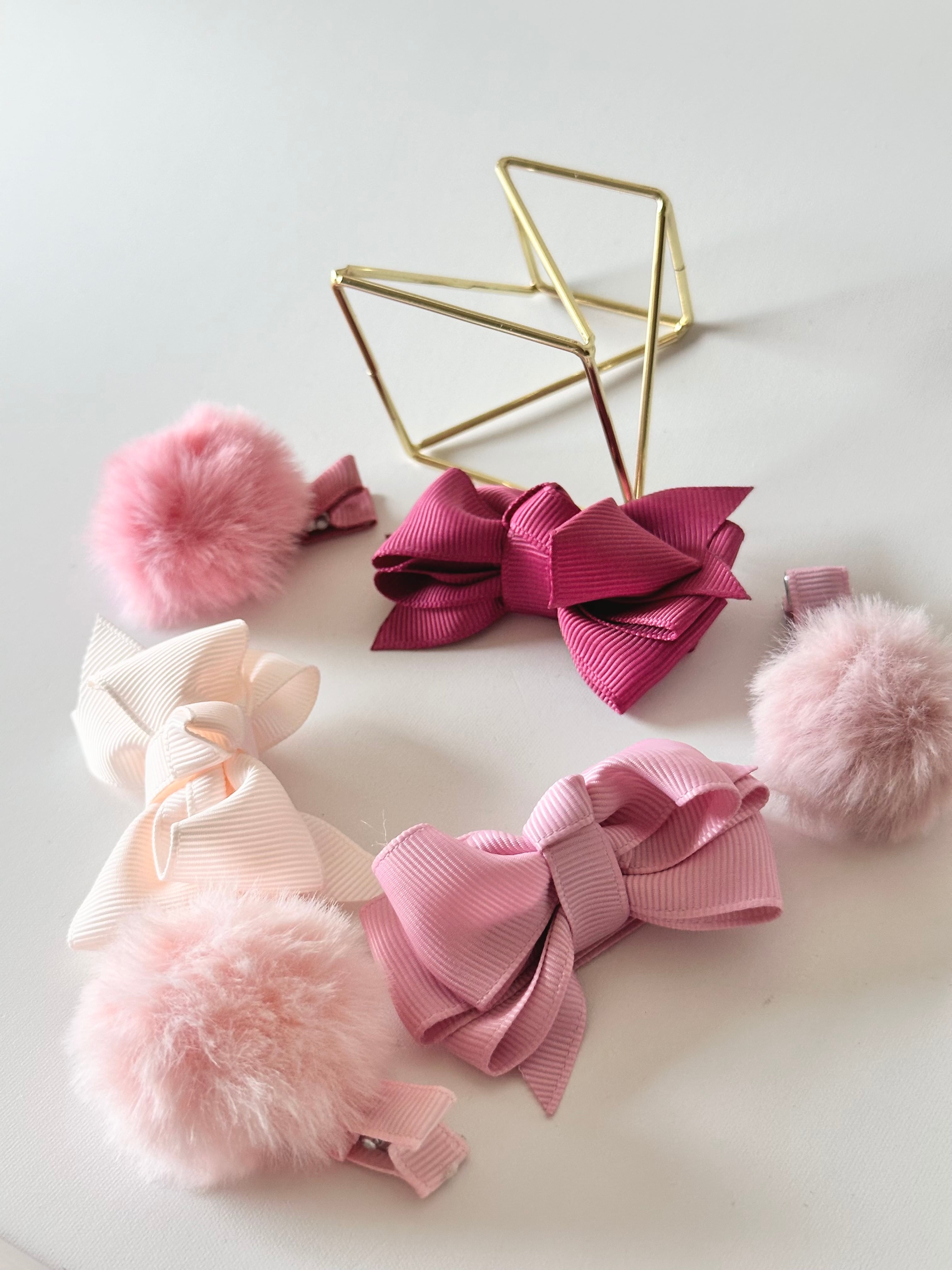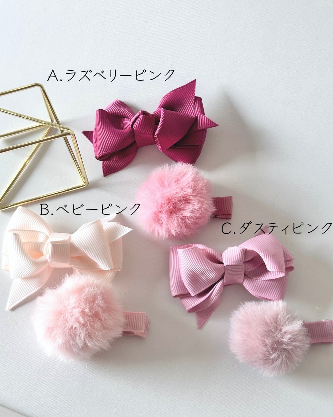 発色の美しいリボンを幾重にも重ねて華やかなリボンクリップをご用意いたしました。