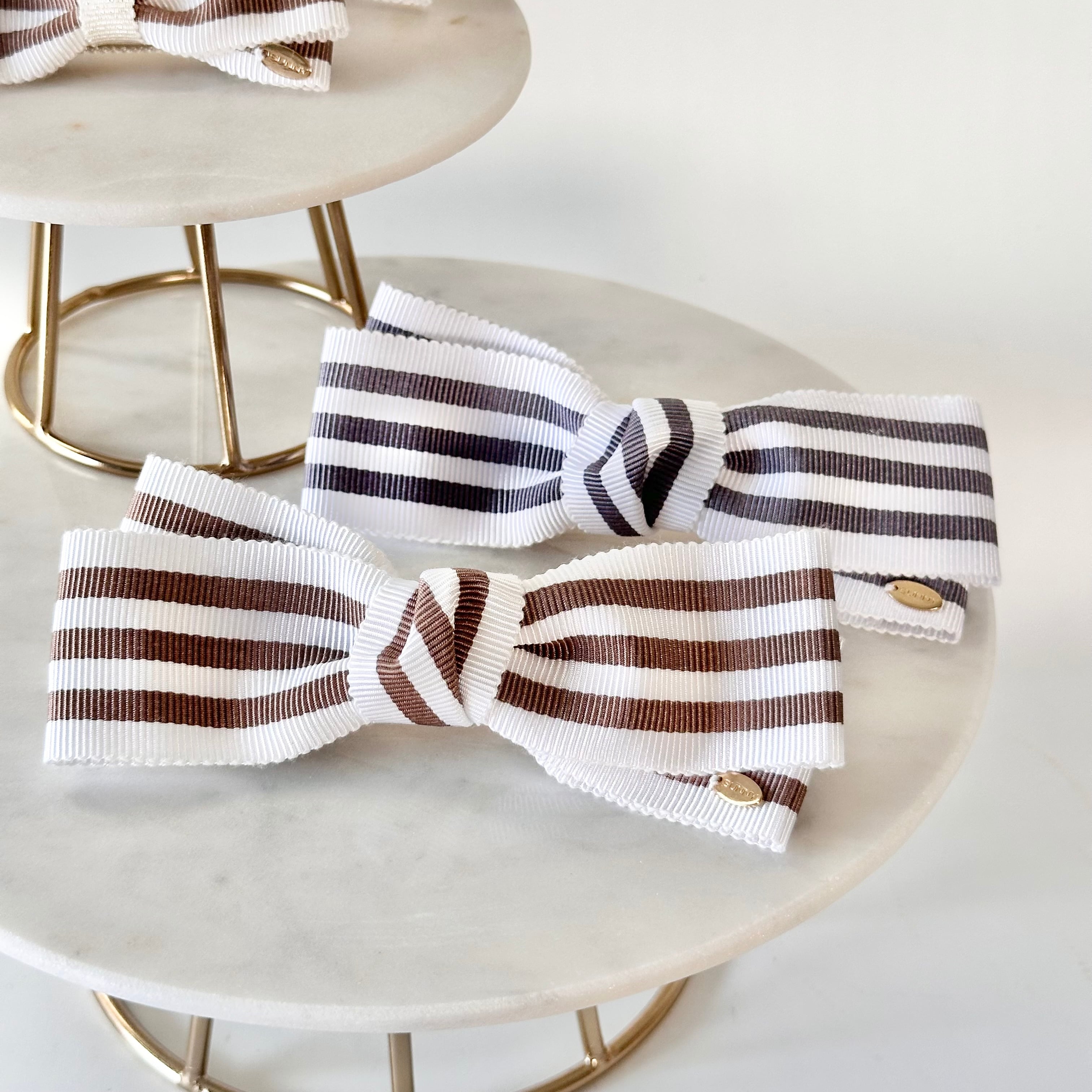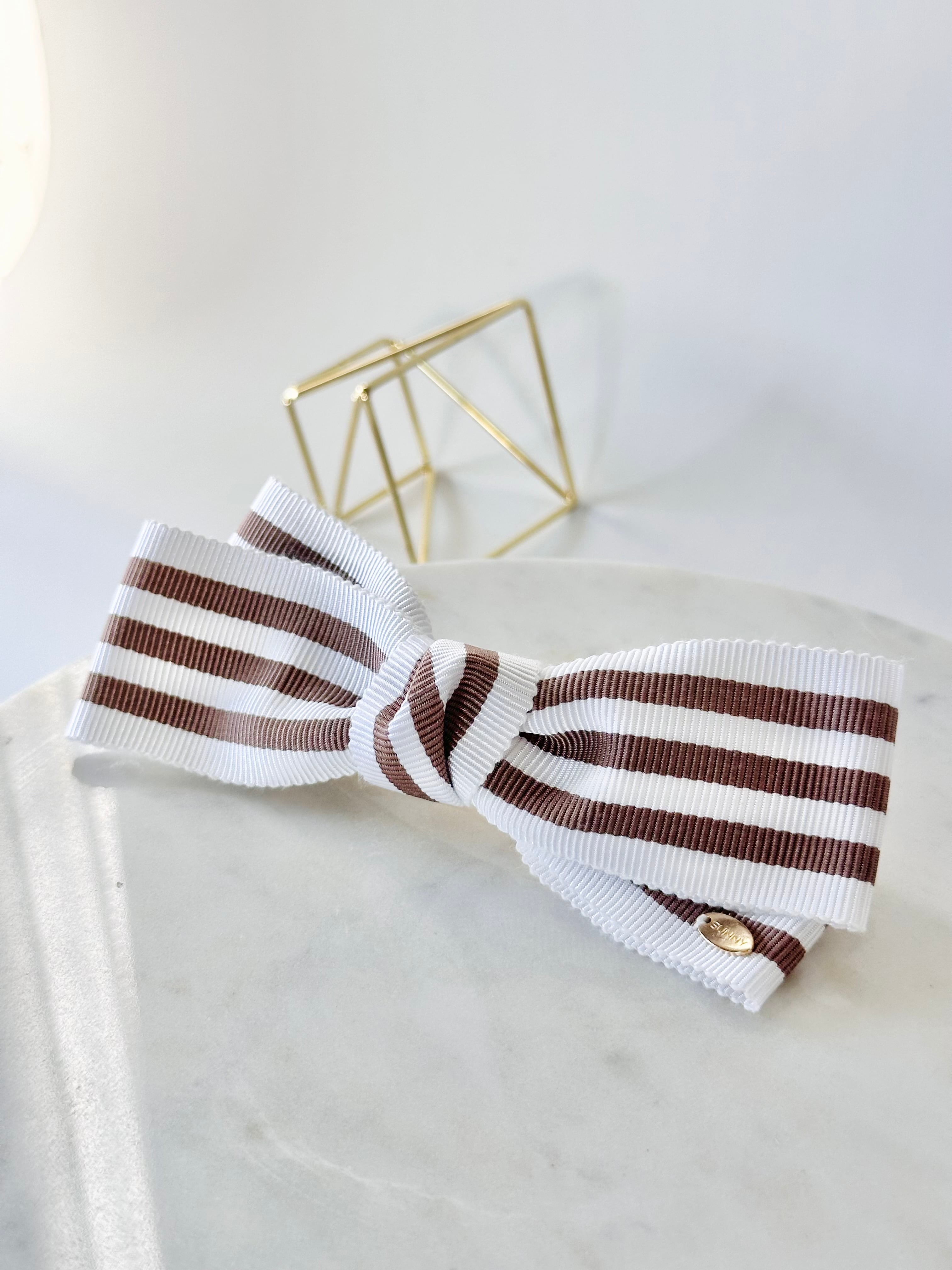 柔らかなブラウン、グレーとよく合う透明感あるホワイトとのストライプ。