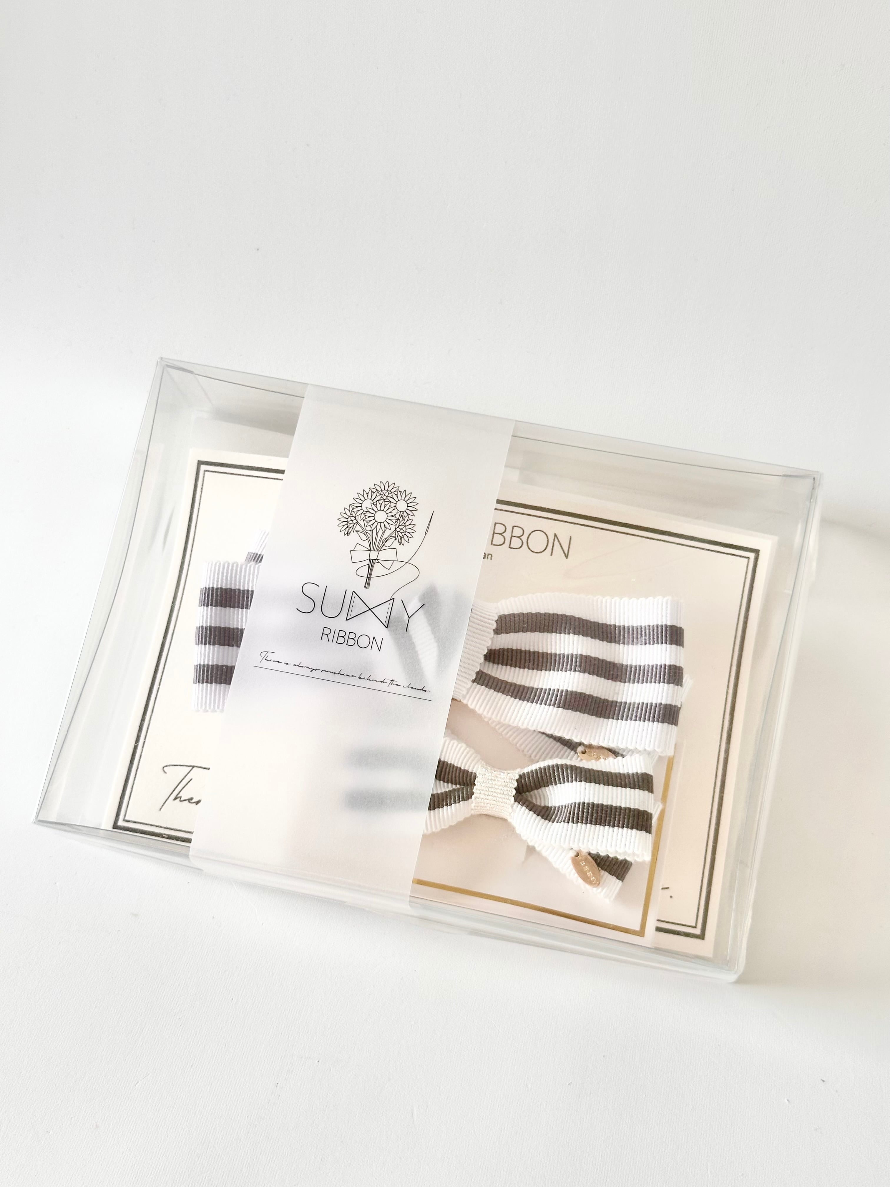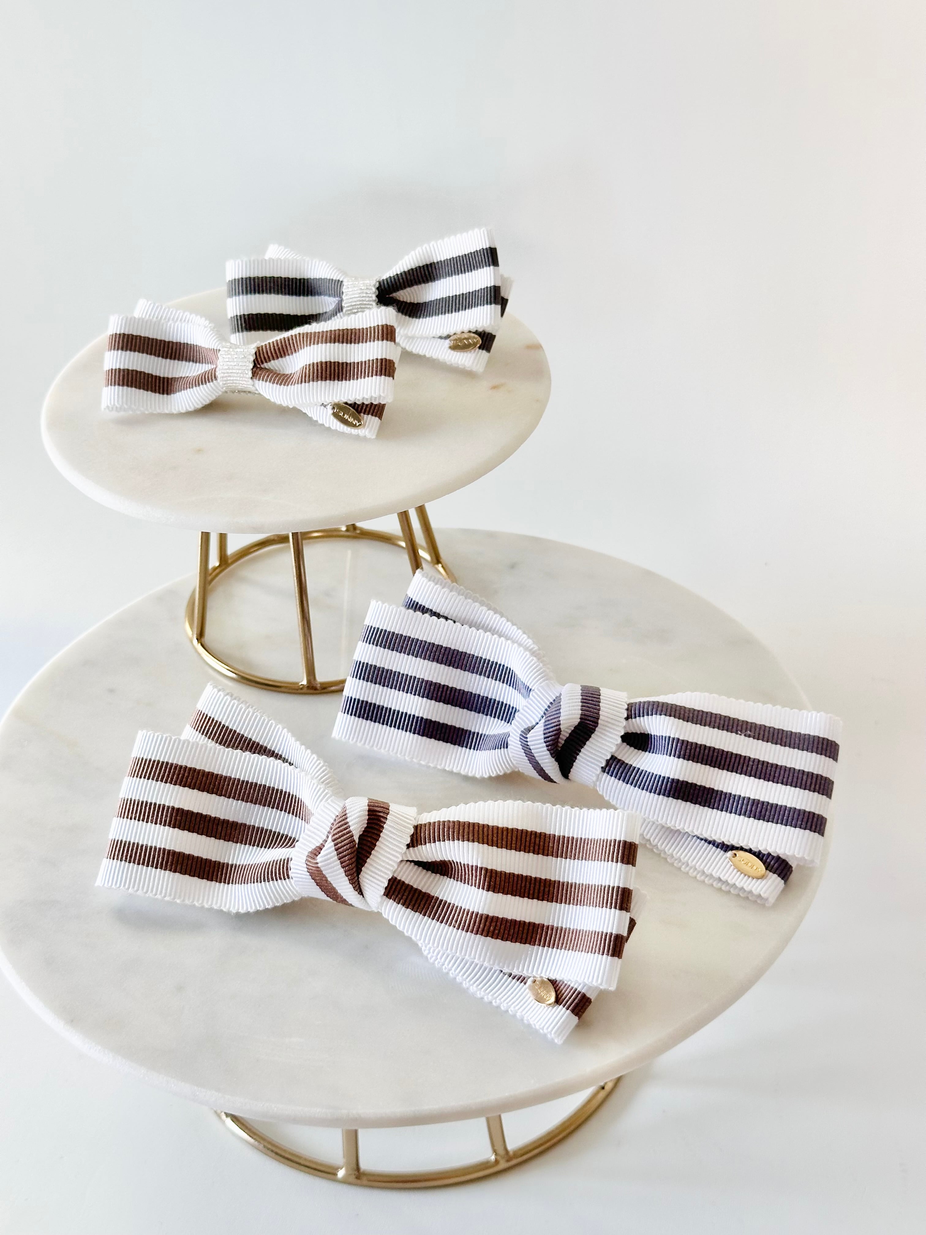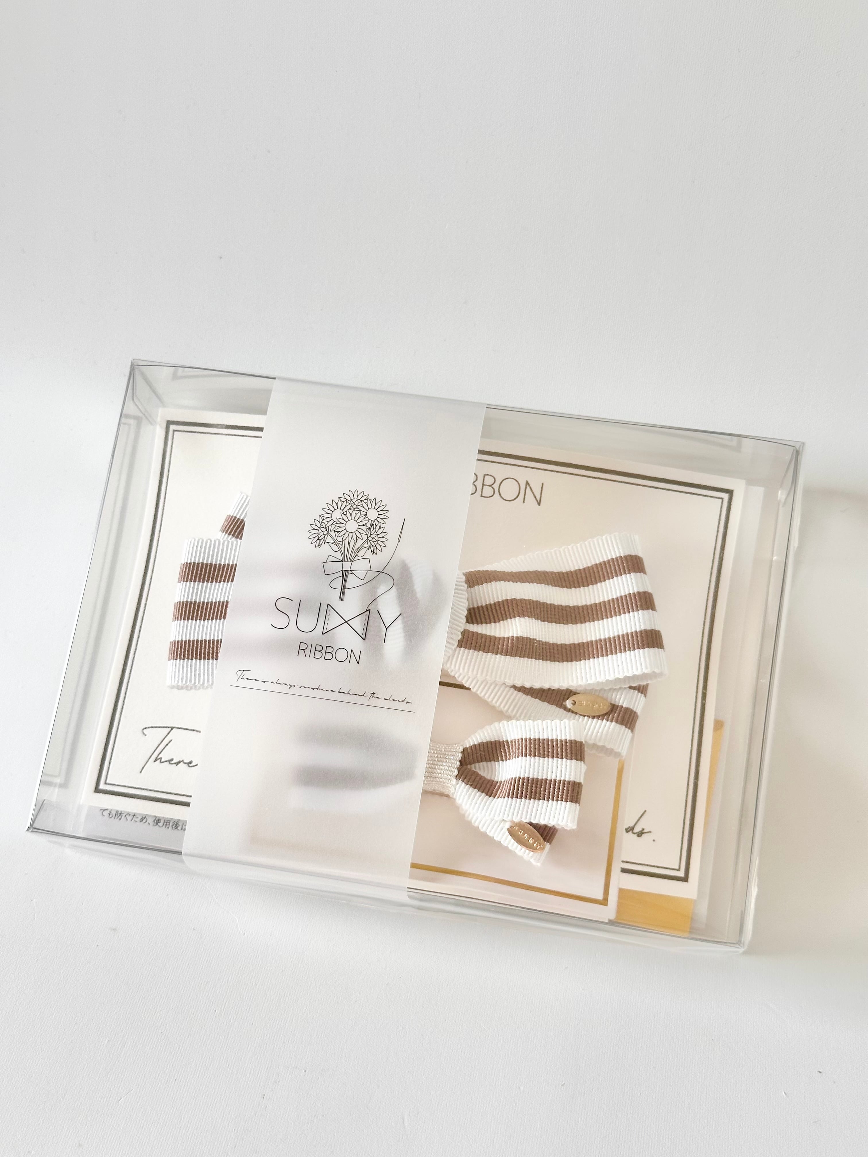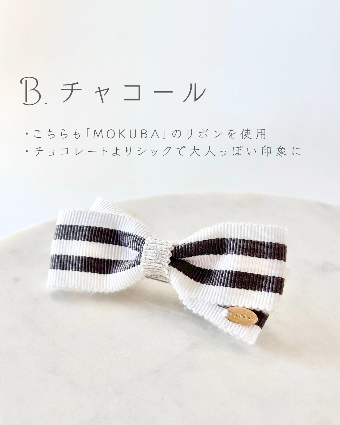 柔らかなチョコレート、グレーとよく合う透明感あるホワイトとのストライプ。