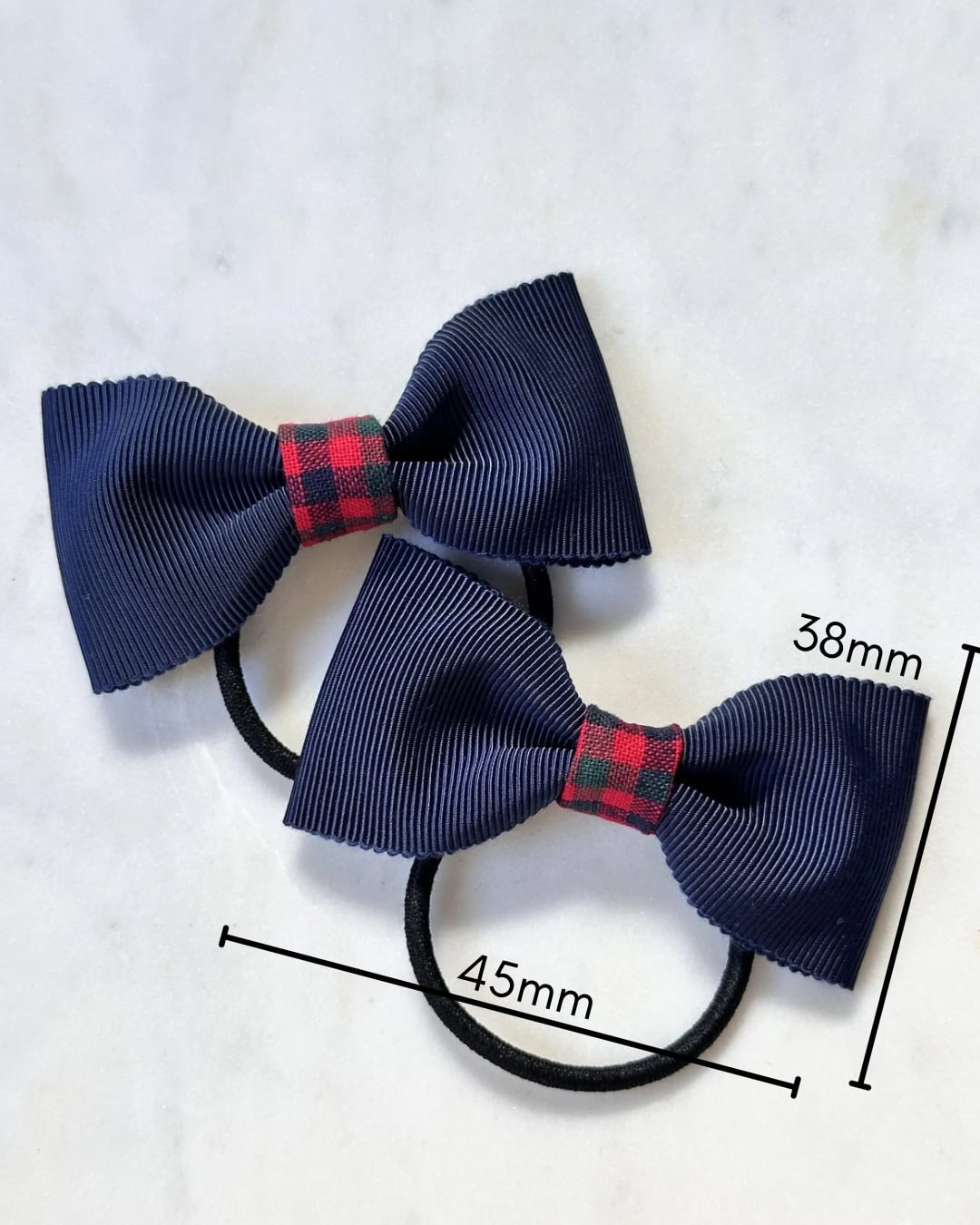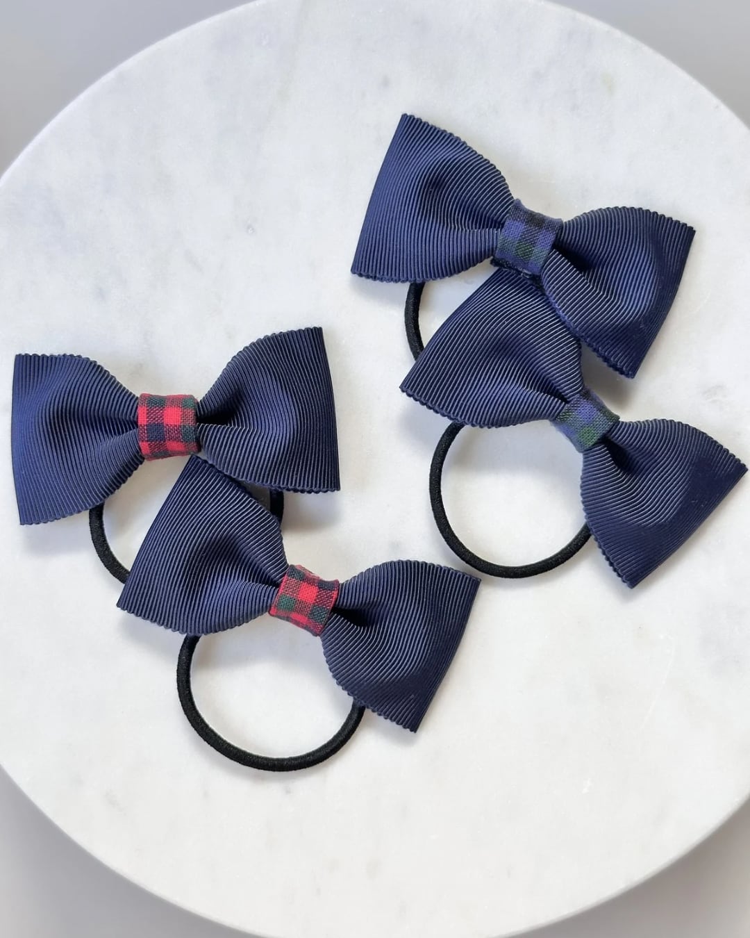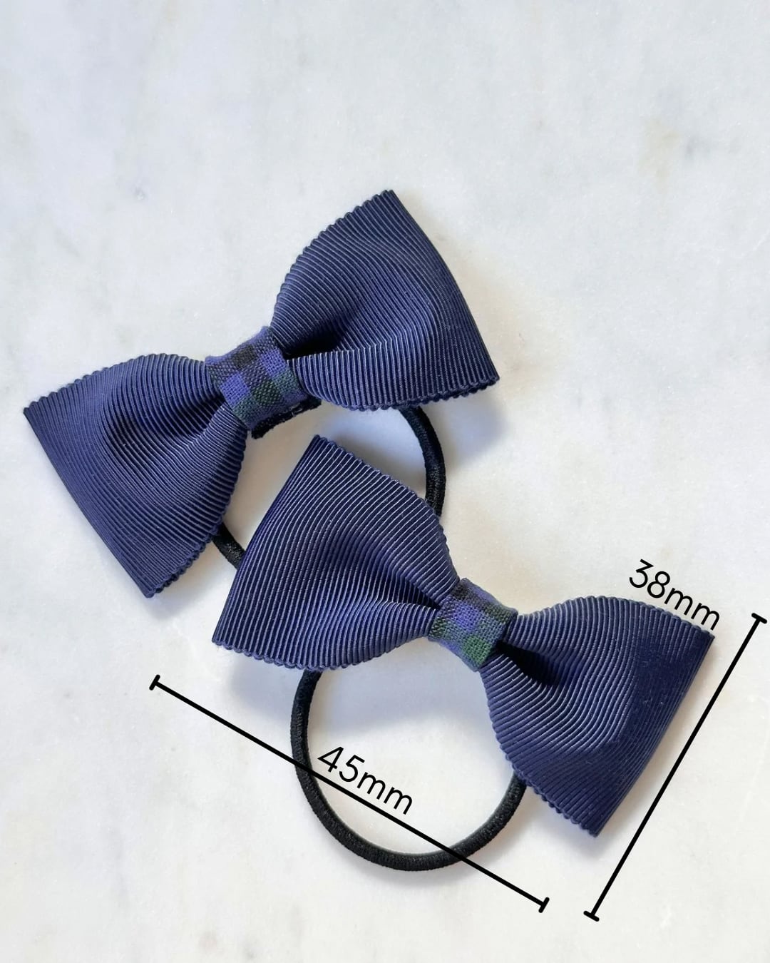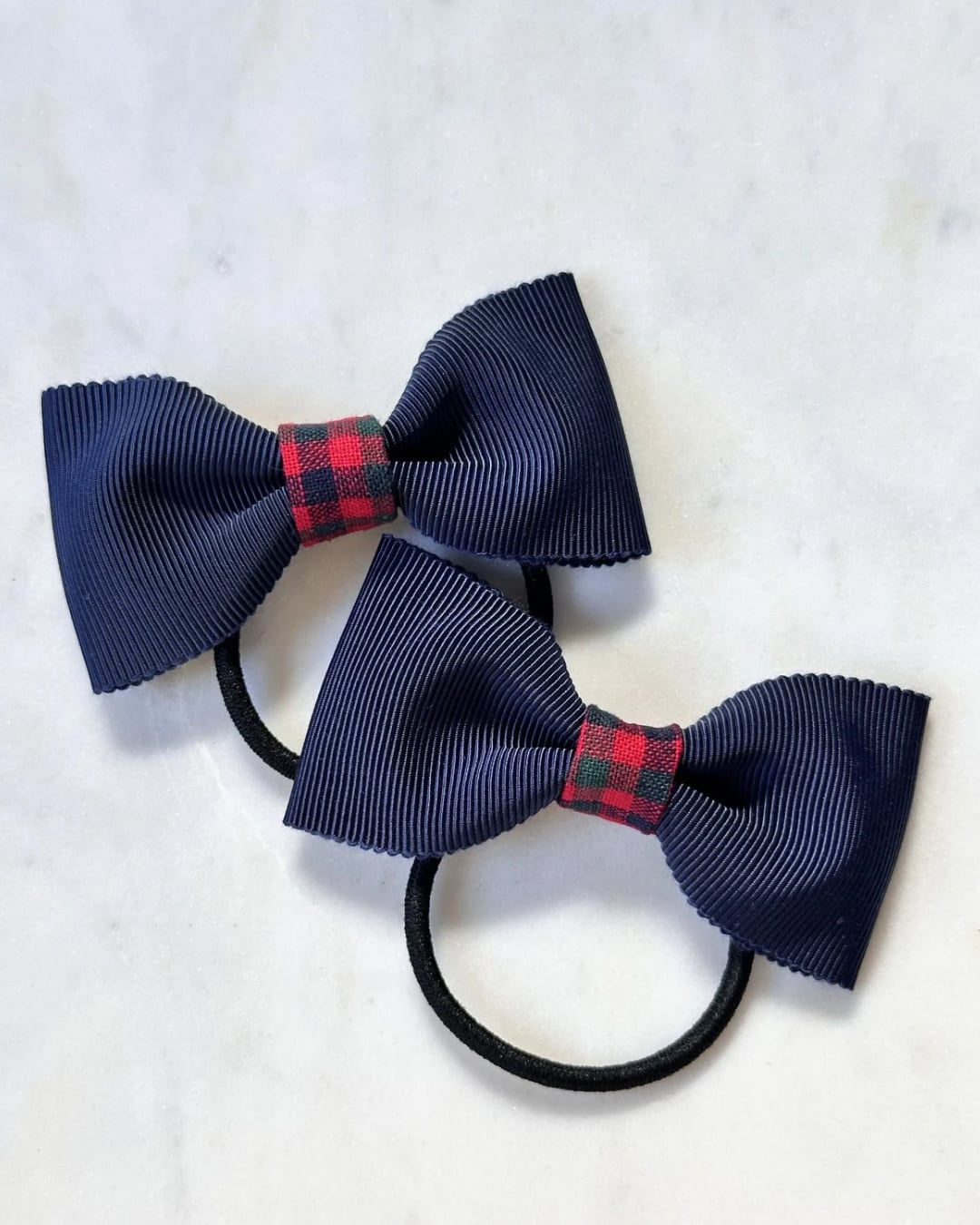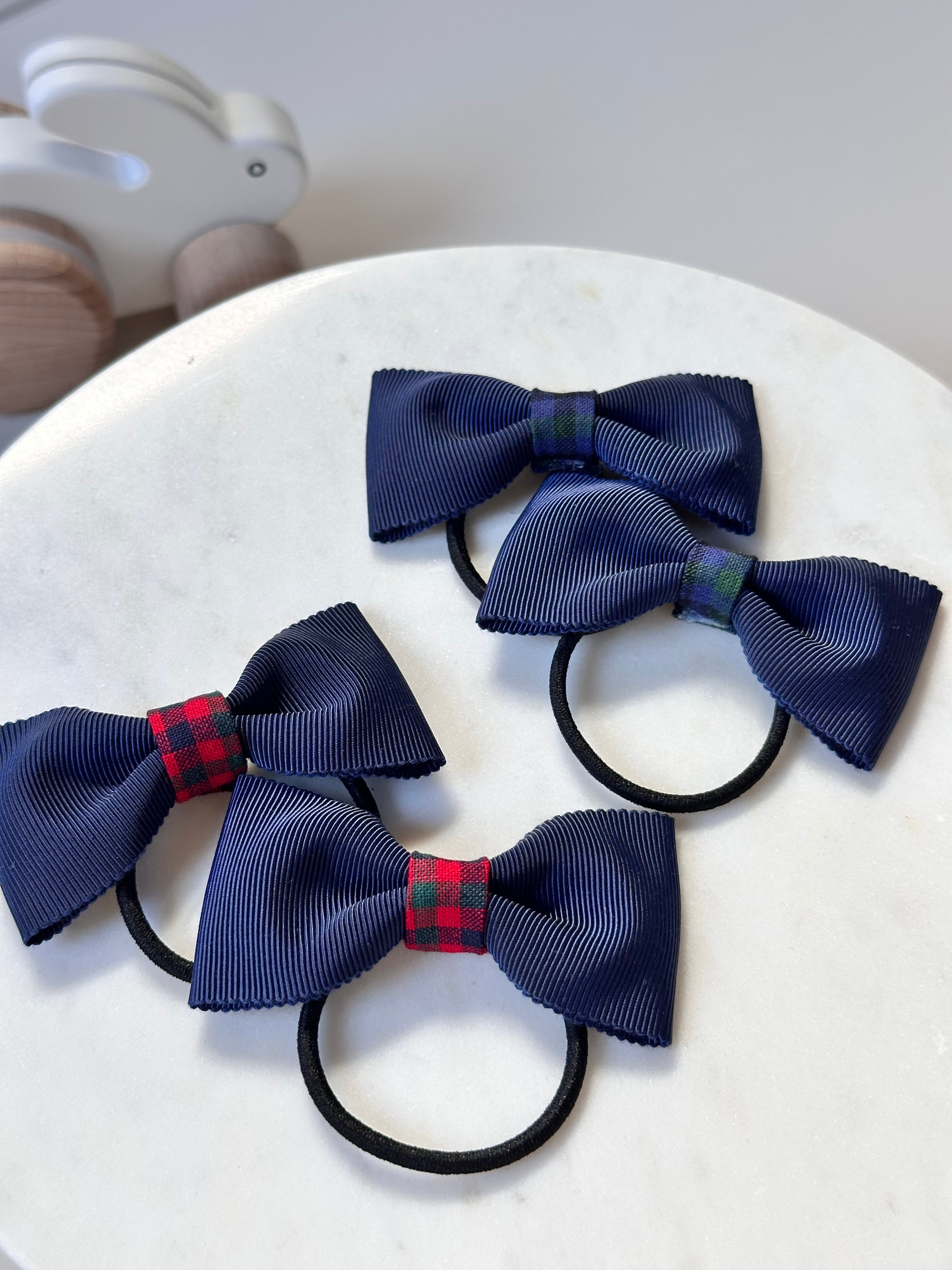 【即納品】チェックとネイビーのミニリボン(ヘアゴム2個セット)