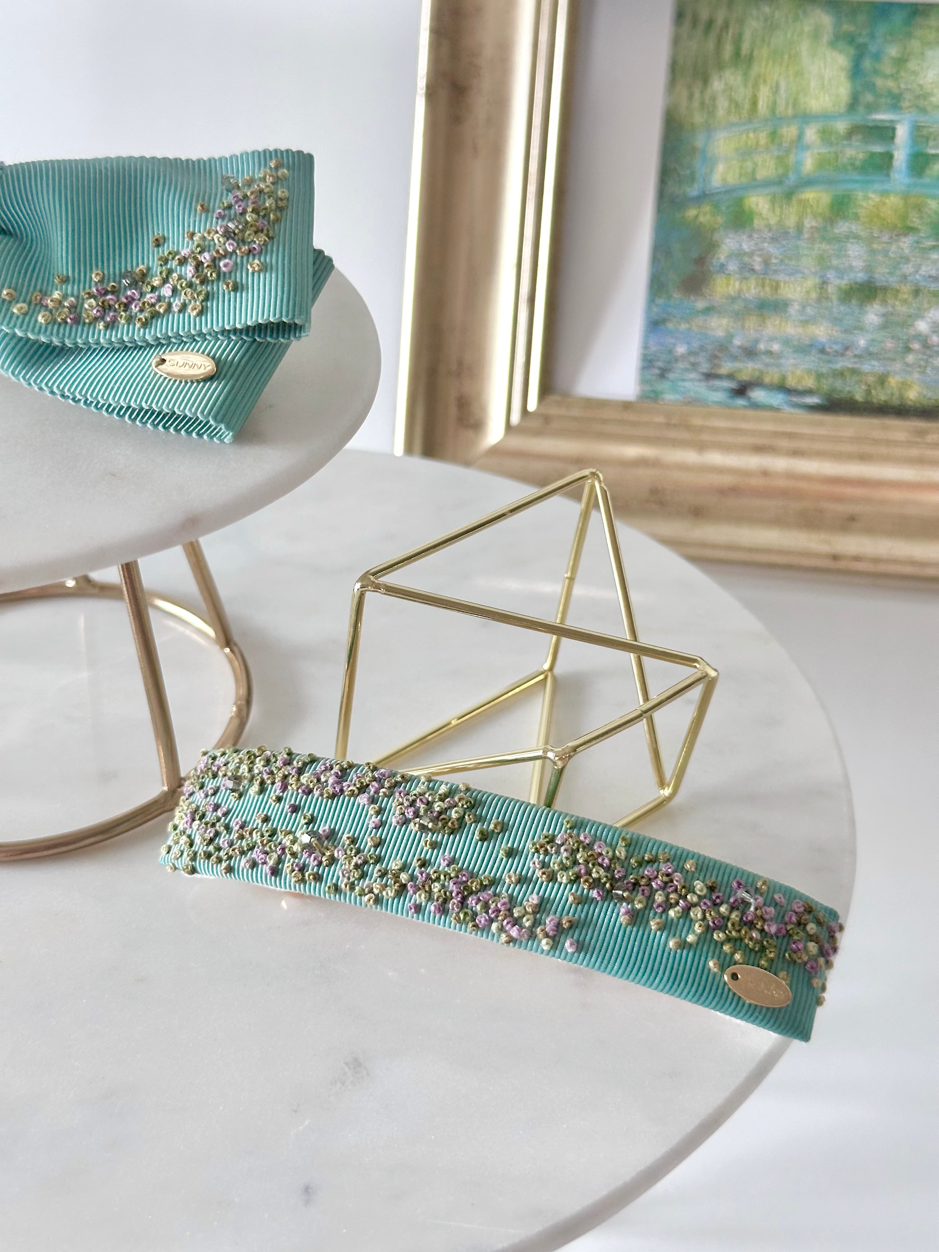モネの庭をイメージさせる、刺繍が美しいLes Nymphéasの新作です。細長い形がエレガントで、どんなシーンにもマッチします。